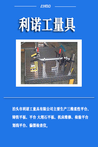 泊頭市利諾工量具有限公司加工、銷售、維修各種規(guī)格鑄鐵平臺,鑄鐵平板,大理石平臺,大理石平板,大理石構(gòu)件,檢驗平臺,檢驗平板,劃線平臺,劃線平板,焊接平臺,焊接平板,三維柔性焊接平臺,三維柔性焊接平板,裝配平臺,裝配平板,試驗臺,機(jī)床工作臺,墊鐵,鑄件,方箱,彎板,偏擺檢查儀,機(jī)床配附件,機(jī)床維修,機(jī)床修理